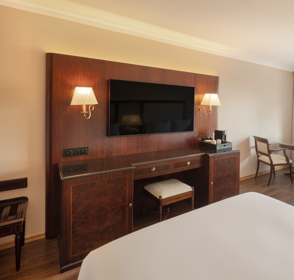 Te sentirás como en tu propia casa en cualquiera de las 262 habitaciones con minibar y máquina de café espresso. La conexión wifi gratis te permitirá estar al tanto de todo. Para tus momentos de ocio, tendrás una televisión LCD de 107 cm con canales por cable. El baño privado con ducha y bañera combinadas está provisto de artículos de higiene personal de diseño y bidés. Entre las comodidades, se incluyen caja fuerte y escritorio, además de un servicio de limpieza disponible todos los días.